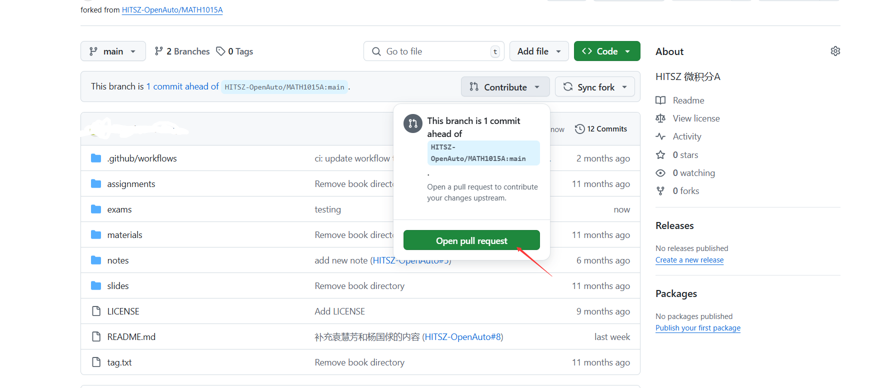 由于我们的仓库设置了文件上传保护,需要手动创建自己的仓库分支。